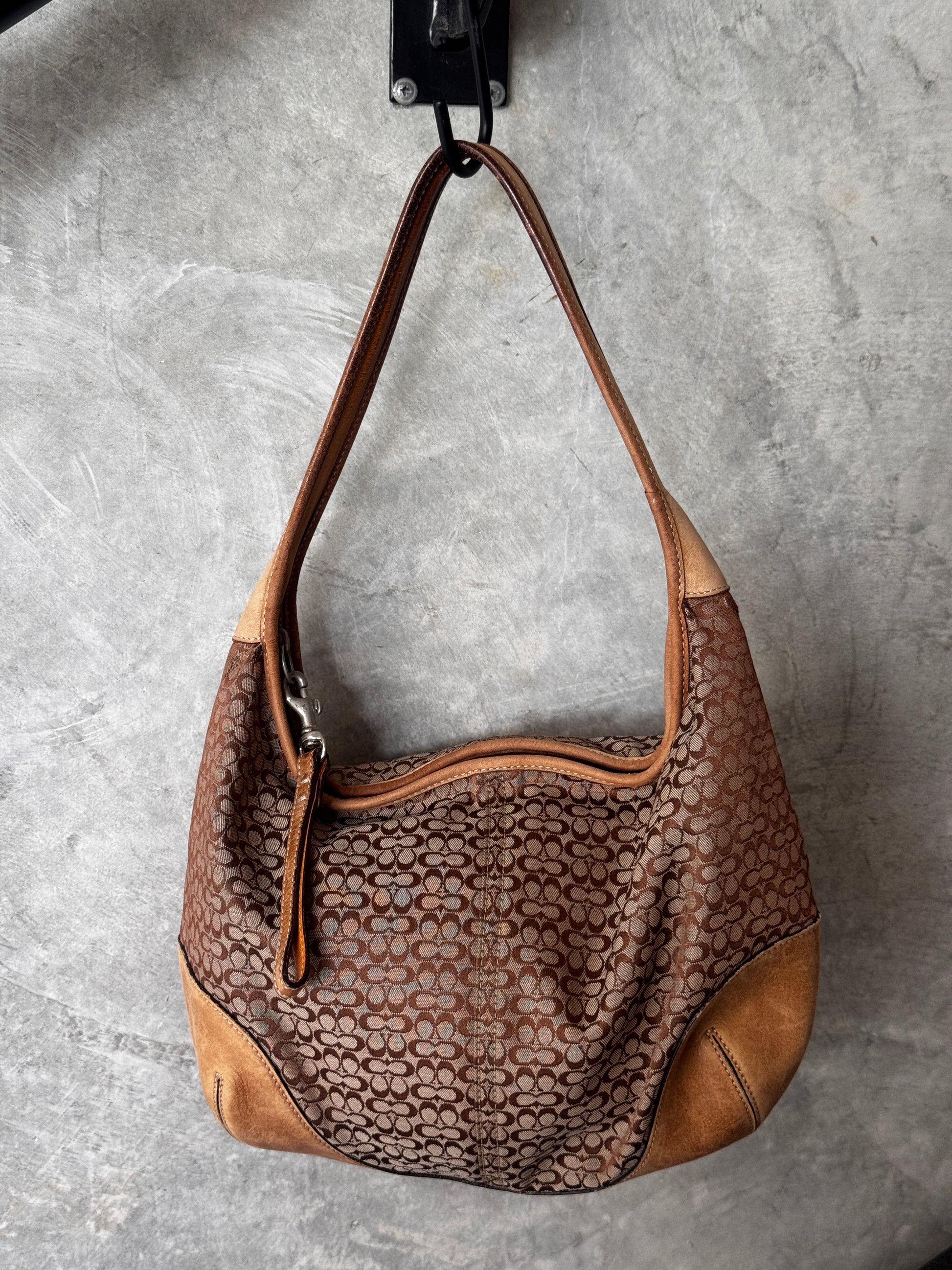 VINTAGE COACH SUFFLETTE BEIGE MONOGRAM HANDBAG